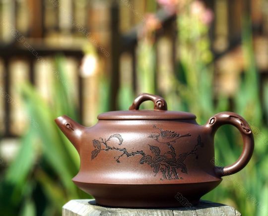 泥料:原礦紫泥 容量:350CC 作者:尹懷 (國家級工藝美術師) 此壺簡單大方,造型獨特,骨肉勻亭,壺的口沿與壺蓋截成一條圓線,口蓋緊密,其對作者的考量可想而知,壺流胥出自然,壺把勻勢而起,且與壺身如意貫氣,壺鈕為樹樁形橋梁式,平緩舒展合體,整器精美絕倫,而且能夠在泥色的襯托下呈悠然、典雅之美。 紫泥· 泥料簡介![]() 簡介:紫泥,為較常見之典型紫砂泥; 良者寡,而劣者多,呈紫棕色,玩家慣呼“黑紫泥”,為最廣泛市場接受的泥料之一。為江蘇宜興黃龍山,礦脈所開挖出來的紫砂原礦提練而成,礦脈里鐵質成份較高泥料內所含顆粒較大結構疏松器身明顯成雙氣孔結構,空氣對流順暢氣孔對流較好;日久使用,漸露鋒芒,養成變化甚大為養壺之最佳教材。泡茶好喝,評價好! 猜您喜歡